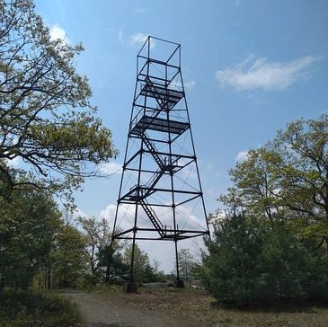 On a clearing atop Mount Gilead (272 feet, second highest point in Lynn Woods) includes the metal frame of an old tower.